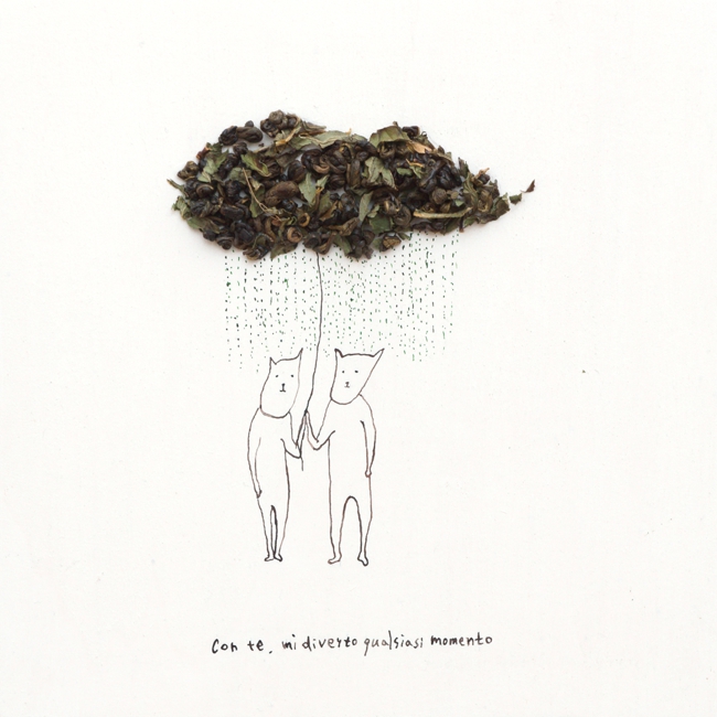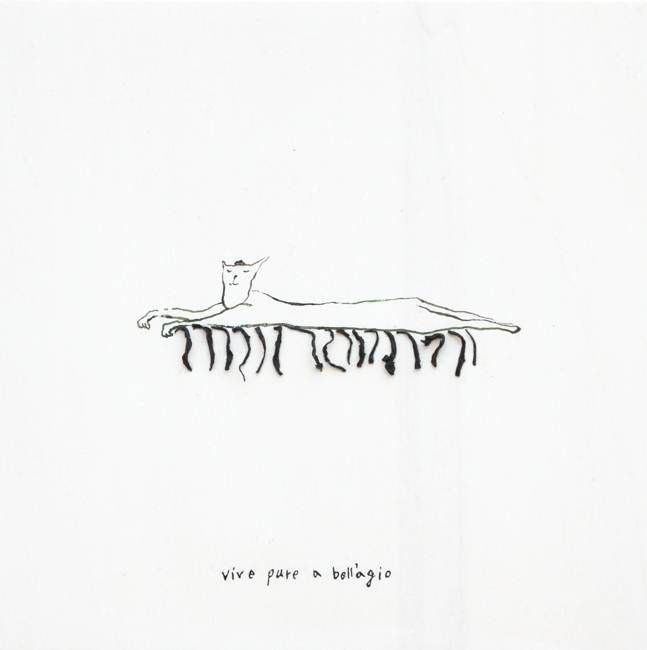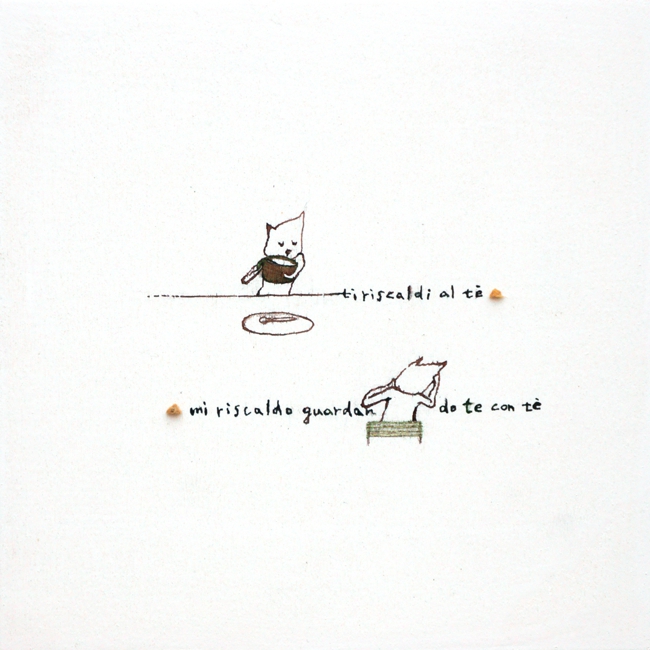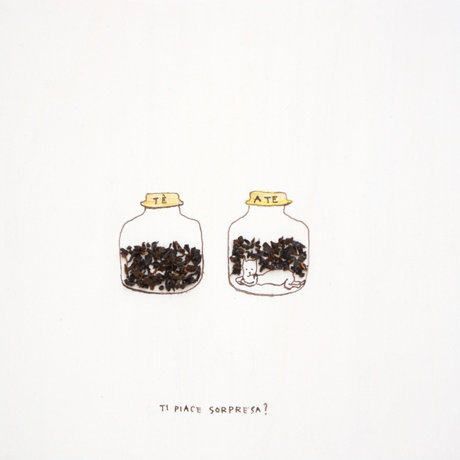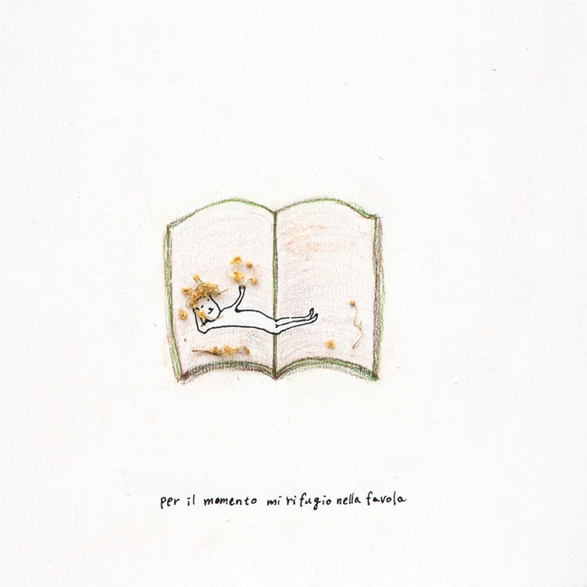 inchiostro, matita colorata, tavola di legno