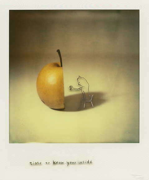 Ayumi Kudo created her new art works by superimposing some drawings made on acrylic sheets to Polaroid snapshots. In this way, Ayumi tries to let dialogue her sign with the instant camera, two different levels of different aesthetics. Her poetic inspiration is based on a prosaic image along a vis ludica that makes fun of reality and ennobles itself. “Exploring the technique of polaroid photographs I tried to connect the reality of my territory with imagination and my dreams.