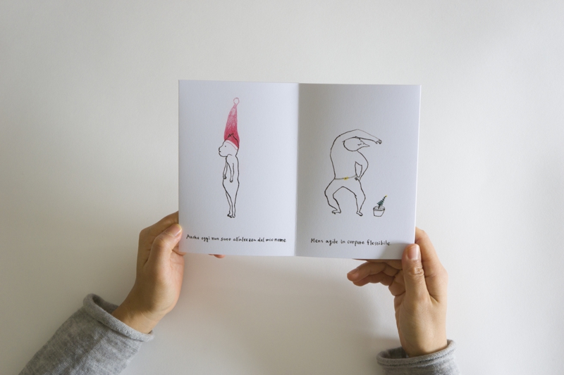 ci sono 13 disegni con piccola poesia nel libro fisarmonica, ha stampato 300 libri in Italiano e in Giapponese.