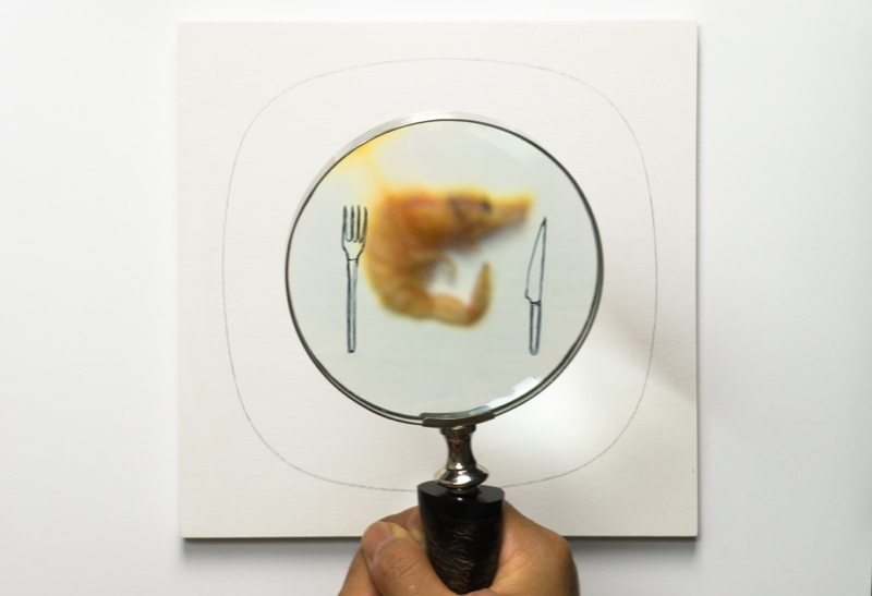 そんな乾物を水と組み合わせたのはそこに独特な生命感を与えたかったのと、レンズ効果で乾燥によって縮んだ分を少しリカバリーするような表現ができたらと思ったからです。