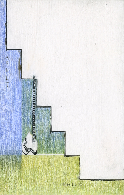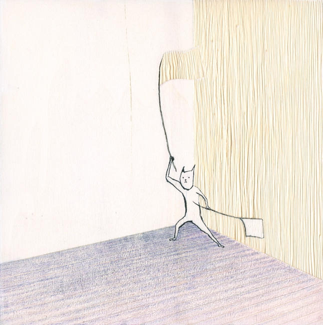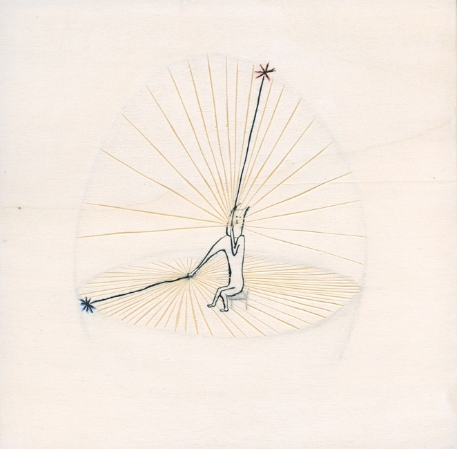 inchiostro, matita colorata, tavola di legno, magnete, gesso acrilico