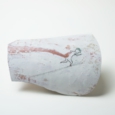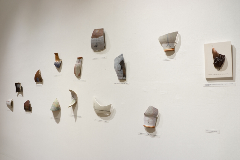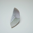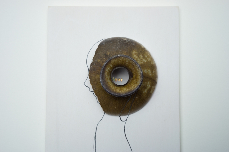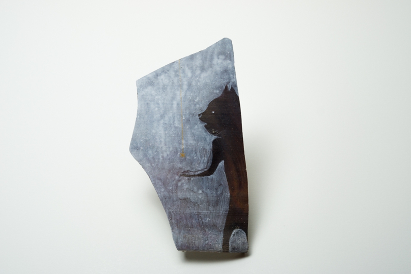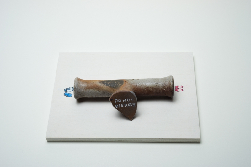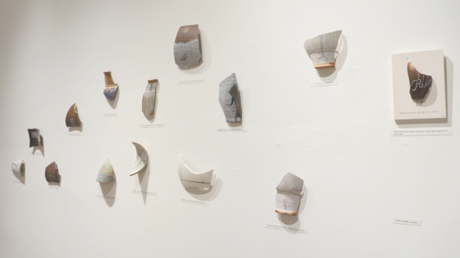 私は現実のものと自分の絵や詩を組み合わせて作品を作るのが好きです。道端の草花をつんで自分の絵にコラージュして作品を作ったり、自分で撮影したポラロイド写真の上に私の絵と詩を書き込んだり、最近では乾物を使ってコンセプチュアルな立体作品などを制作してきました。今年は日本にすこし長く滞在することになったことで備前陶片と出会い、このおもしろい素材と自分の表現をかけあわせて作品を制作してみようと思いました。そうして生まれたのが”ひとかけらの詩(ウタ)シリーズです。
