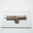 まずは陶片の角をヤスリでやすって角のとがりを取っていきます。そうやってビゼンカケラの形や表面の様子、色、模様、その厚み、カーブの具合などを体と心になじませていきます。この作業は作品をイメージするためにもとてもたいせつな工程です。少し丸くなって安全になったカケラを手にとって360度ゆっくりじっくり眺めて耳を澄ませ、対話してみます。カケラは無口で固いのでその心を開くには時間が必要です。
